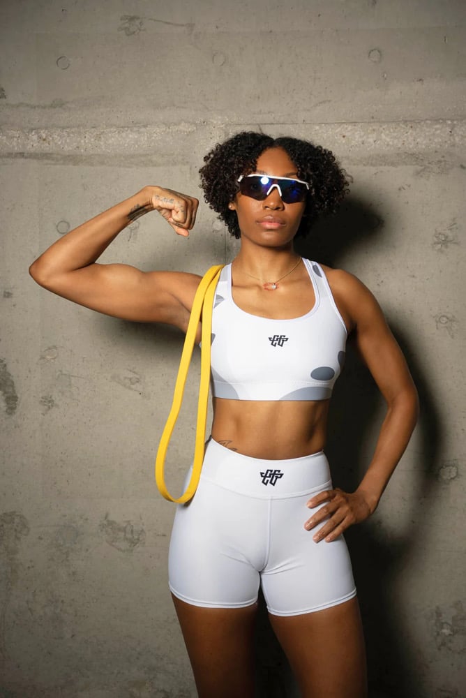 Made from moisture-wicking material that stays dry during low to high intensity workouts. Supportive material in the shoulder straps, double layer front, and a wide elastic band to ensure constant support.